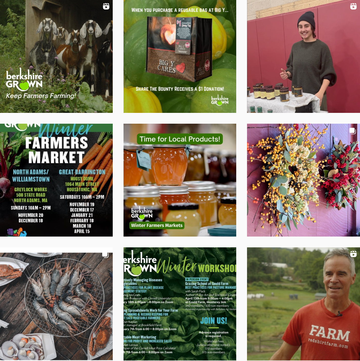 Outcomes? Over the course of 3 years, Berkshire Grown’s Instagram audience has quadrupled, going from 900 to 3,700 followers, and Facebook gained 1,000+ fans. Instagram is an especially dynamic channel with farmer “takeovers,” videos via Reels, and consistent celebration of food and farmers. Berkshire Grown also posts to Google (important!).